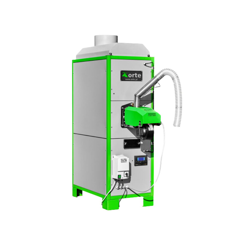 Nagrzewnice Orte Power na pellet to automatyczne urządzenia pracujące w układzie efektywnej wymiany ciepła. W trakcie spalania paliwa nagrzewany jest wymiennik a wentylator przetłaczając powietrze ogrzewa je. W ten sposób następuje szybka wymiana energii pomiędzy dostarczanym powietrzem a gorącym wymiennikiem. Wtłoczenie gorącego powietrza do pomieszczenia daje odczuwalny efekt wzrostu temperatury. Temperatura powietrza na wylocie osiąga od 40 °C do 90 °C.