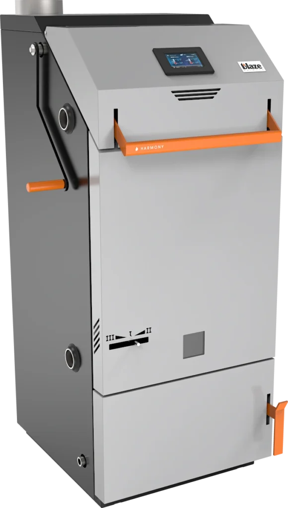 Zamontowanę pod kątem drzwiczki górne zwiększają objętość komory spalania, wydłużając tym samym czas spalania. We wszystkich modelach BLAZE HARMONY komora zasypowa jest izolowana, co kilkakrotnie wydłuża żywotność kotła.