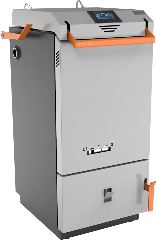 Kocioł BLAZE PRAKTIK charakteryzuje się wysoką efektywnością spalania drewna oraz wygodną i prostą obsługą. W połączeniu z możliwością uzyskania dużej mocy (do 40 kW) pozwala na regulację pracy w zakresie 30-100%. Urządzenie przeznaczone jest do ogrzewania domów jednorodzinnych i nie wymaga instalacji zbiornika akumulacyjnego. BLAZE PRAKTIK wyposażony jest w rozbudowany sterownik obsługujący oraz moduł internetowy.