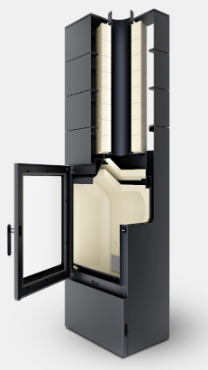 Łączy praktyczność z estetycznym wyglądem piecyka kominkowego.